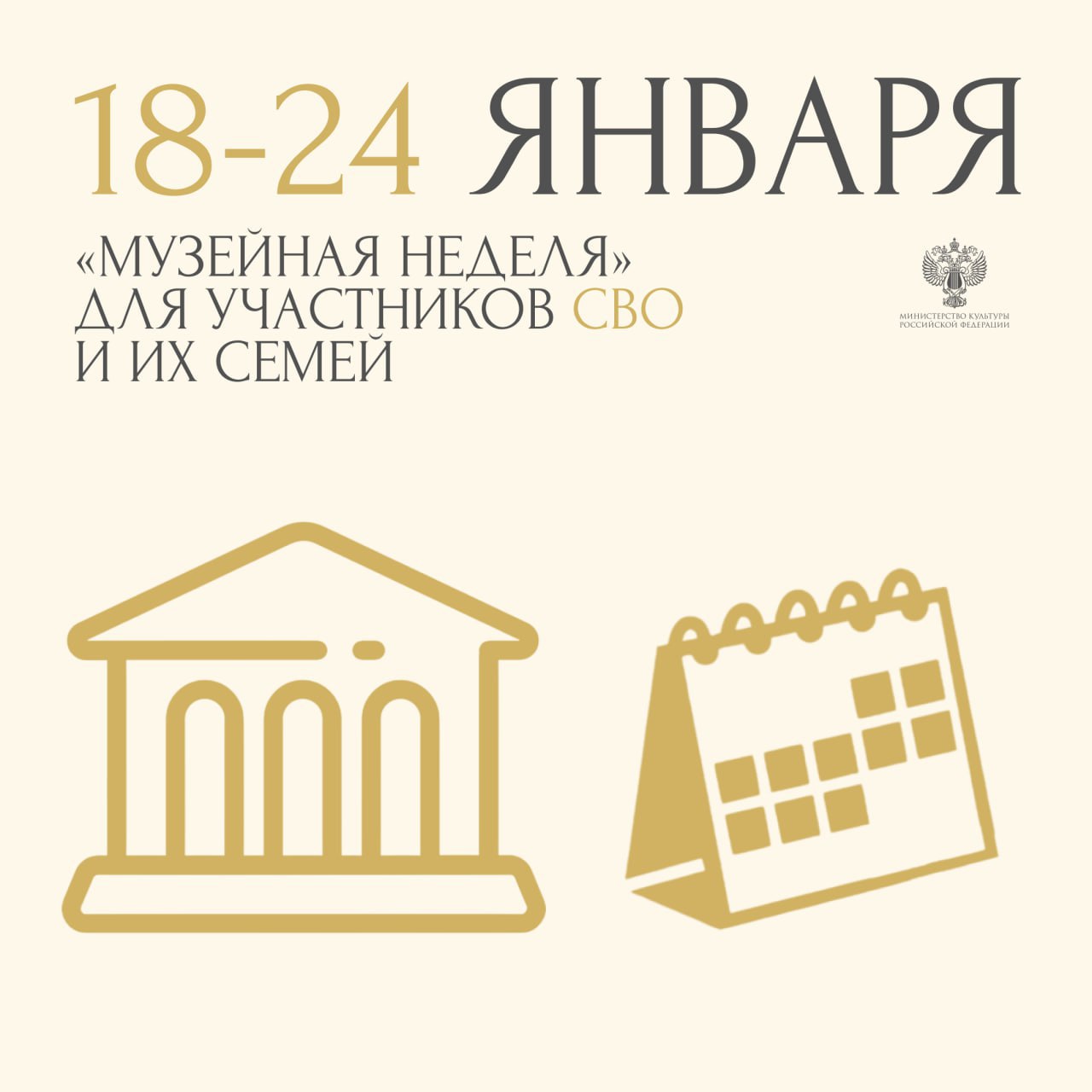 С 18 по 24 января российские музеи снова открывают свои двери для защитников Родины и членов их семей. В рамках акции они смогут бесплатно посетить постоянные экспозиции, временные выставки и мероприятия.