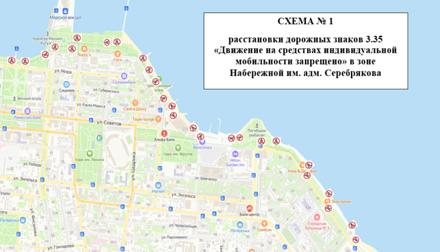 - Запрет движения на средствах индивидуальной мобильности по набережной.