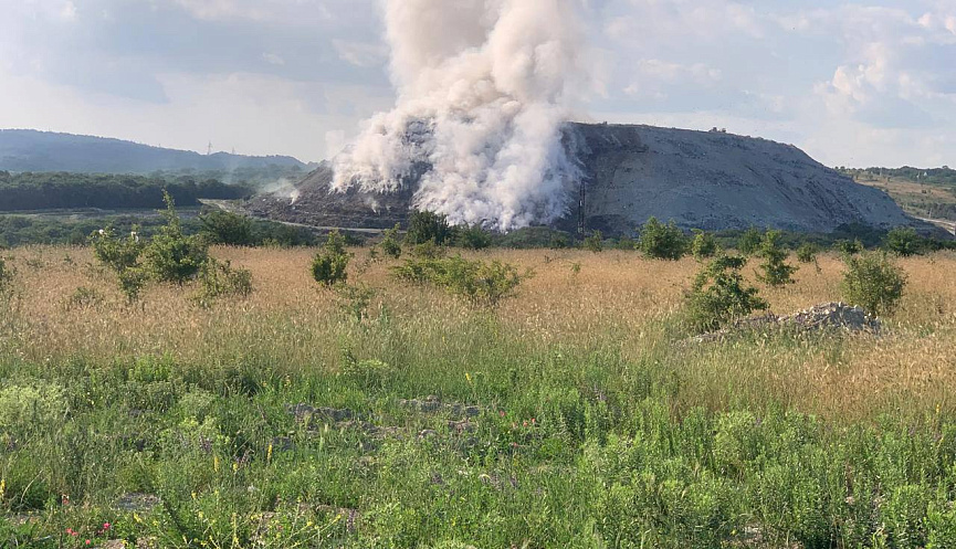 В Новороссийске продолжается ликвидация возгорания на мусорном полигоне