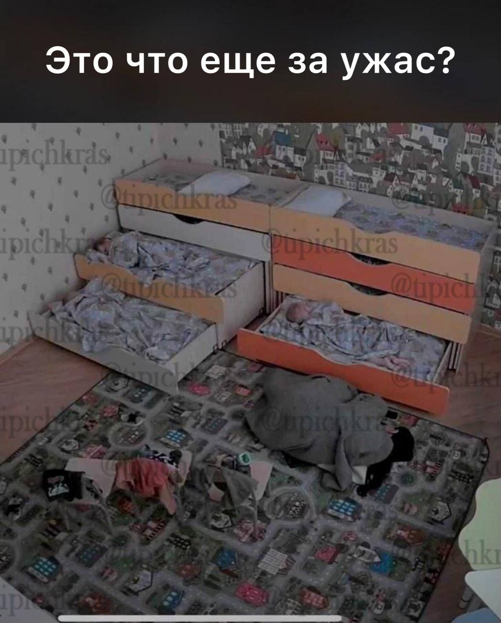 Родители также рассказали о наличии видео, где в спальне спят дети и рядом на полу на ковре почивает под своим пальто воспитатель. Во время сна она кашляет, вытирает сопли руками, а потом этими же руками трогает детей. Однако директор дошкольного учреждения тоже посмотрел это видео и не придумал ничего лучше, как заблокировать родителям доступ к камерам.
